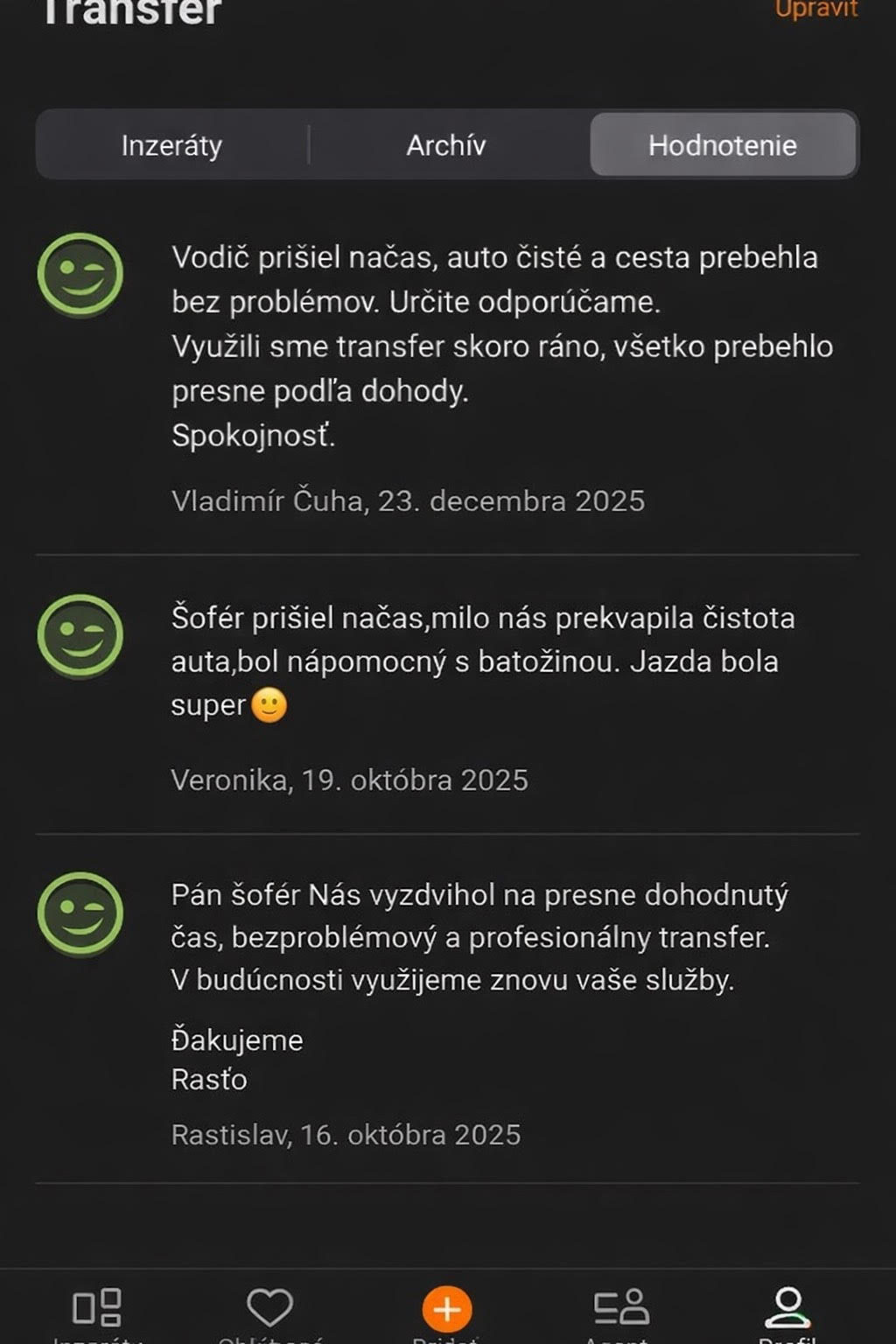 Naša spoločnosť T&T Group sa špecializuje na poskytovanie služieb v oblasti autodopravy a prepravy tovaru v rámci SR. Taktiež Naša spoločnosť poskytuje služby prepráv osôb a Letiskového Transferu 9 mietnym vozidlom Renault Trafic. Sme spoľahlivým partnerom pre našich zákazníkov, ktorý od nás očakávajú rýchle, bezpečné a efektívne doručenie tovaru na miesto určenia. Disponujeme dodávkovými vozidlami do 3,5t a taktiež úplne novým osobným 9 miestnym vozidlom pričom naši skúsení vodiči sú odborne a zodpovedne vyškolení pre každý typ prepravy. Vďaka tomu sme schopní zabezpečiť prepravu tovaru alebo osôb spoľahlivo, bezpečne a v čo najkratšom čase.